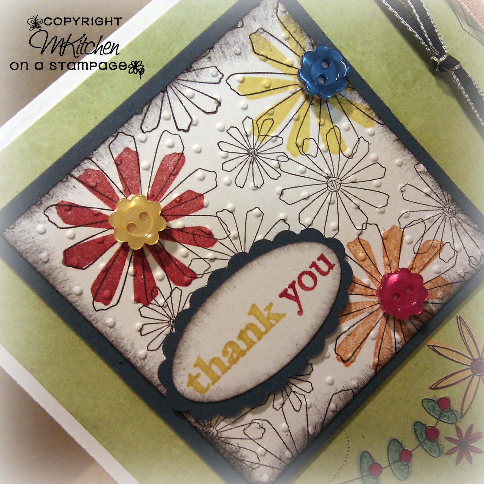 Okay, so there are my 5 for today--I HAD to post them!!! Now, why am I giving thanks? Well, yes, Thanksgiving is coming up, but I also found a new challenge that I would like to participate in--Creative Card Crew! This weeks challenge is THANKFUL. :) I am also submitting this to Truly Scrumptious--BINGO challenge. I chose embossing, buttons, and ribbon. :)