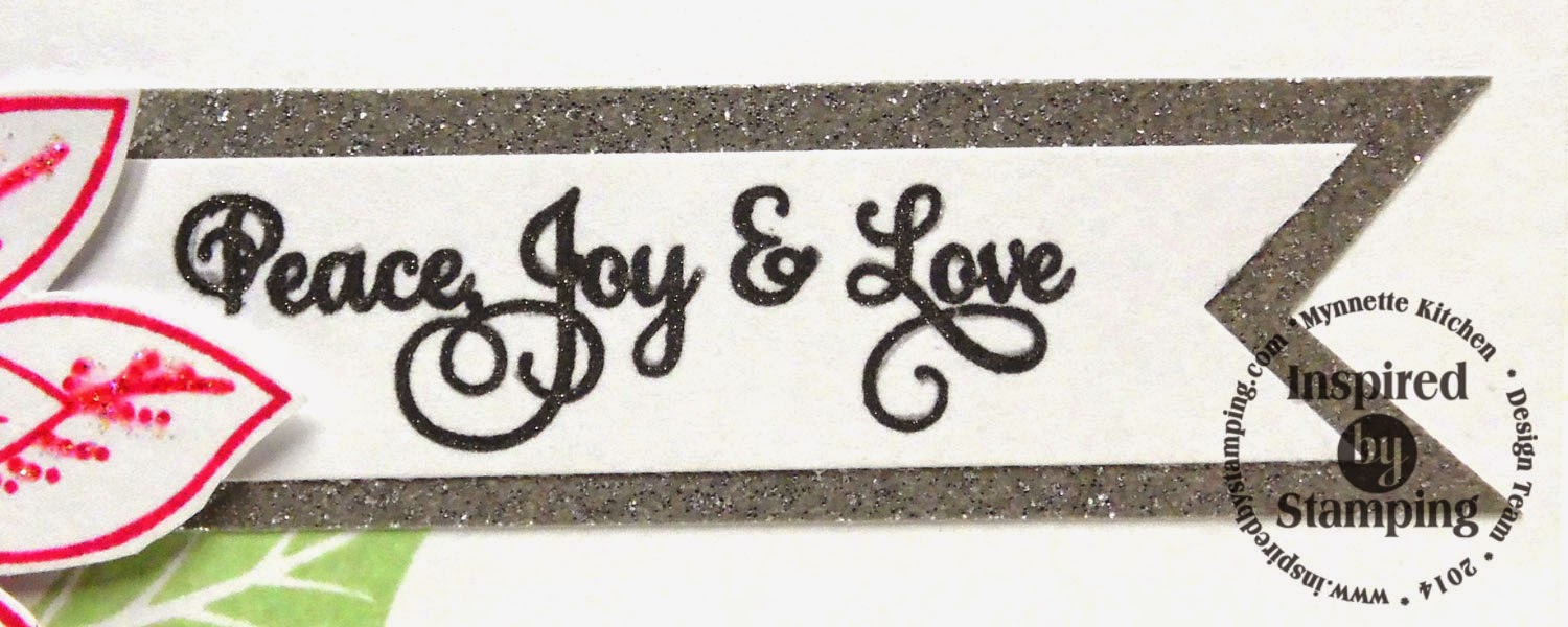 After adding the poinsettia, I stamped one of the sentiments from the Poinsettia set and created a layered banner with silver glitter paper for it. I added some sparkle with a clear glitter gel pen and added this to the card.