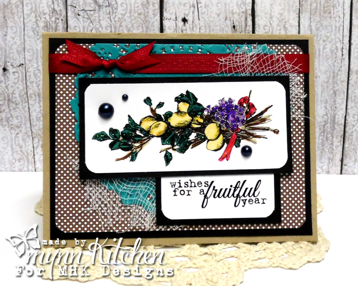 Isn't that beautiful?! I know that some of you are heading from summer into fall, while others of us are moving from winter into spring, so I went with something I felt could go either way. I chose to use the *NEW* Fruit Borders set for my creation. Take a peek...