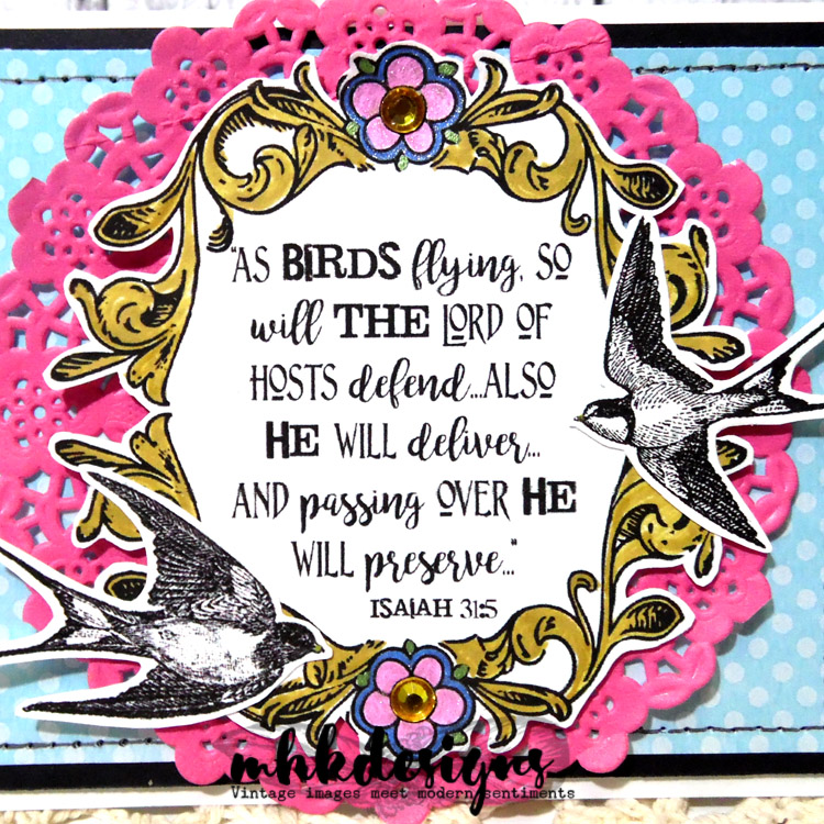 This has to be one of my favorite sets that I've made to date! I added the sentiment to the inside of the frame image before printing it off. I colored the frame with a Wink of Stella gold pen and Sakura gel pens. The birds were simply printed and fussy cut before being added.